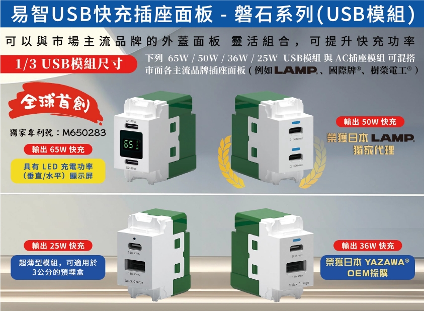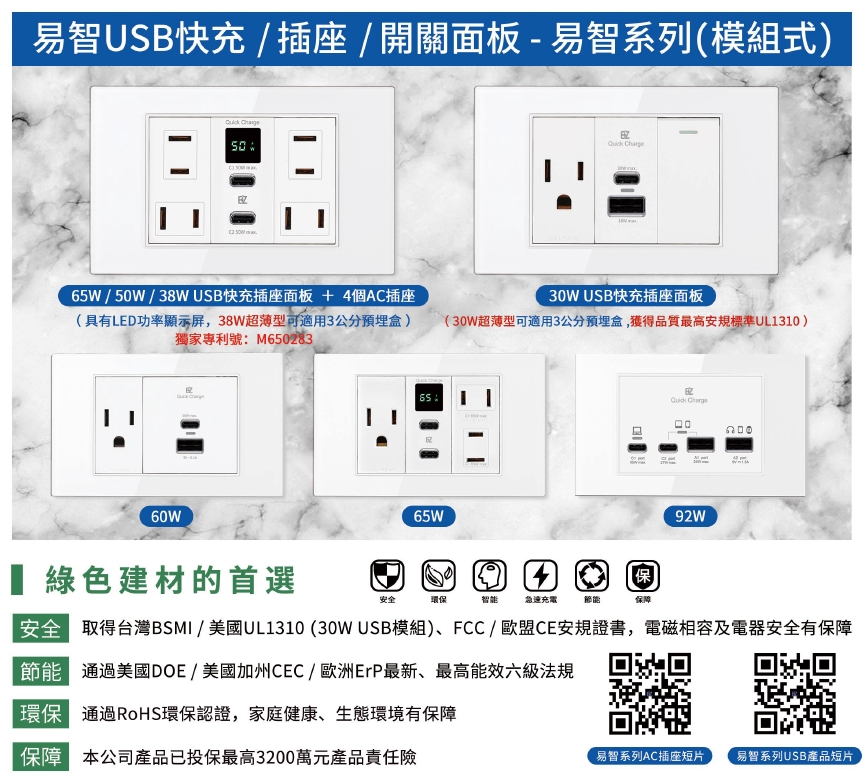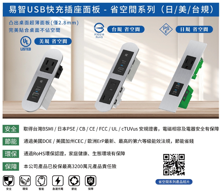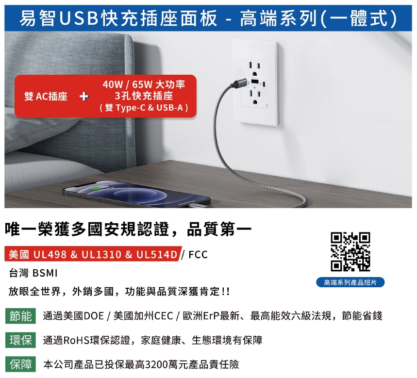 USB快充插座模組+AC安全插座